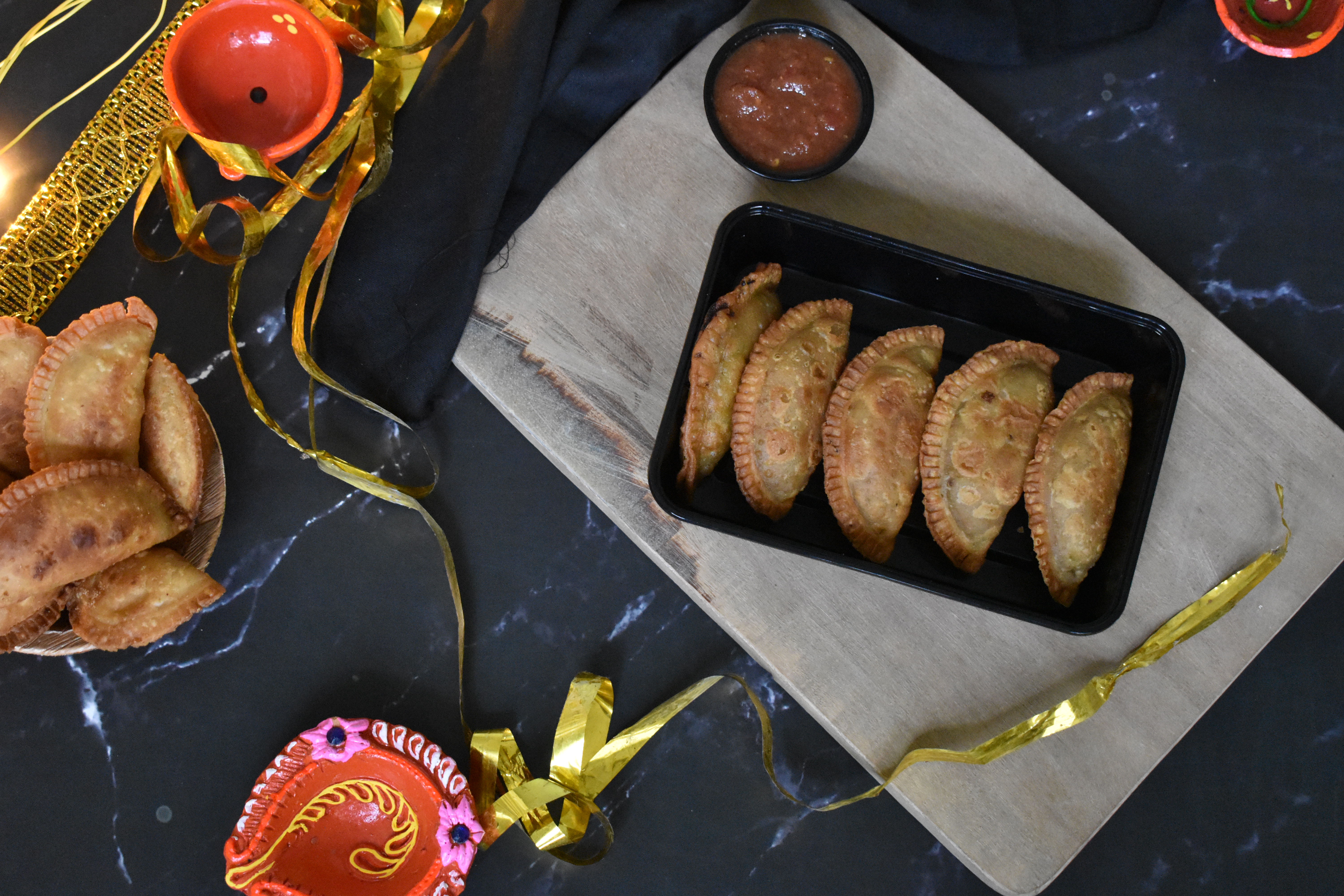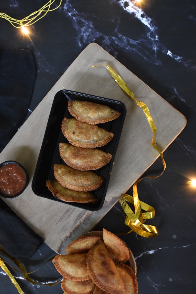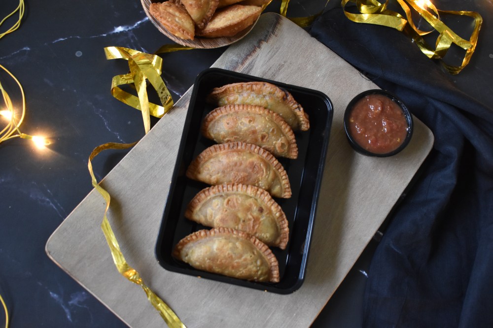 Empanadas are a kind of baked or fried dumplings consisting of pastry & filling where the filling is wrapped or coated in a bread or dough. They can be described as siblings of Indian Gujiya, which are usually sweet dumplings made by coating dough around sweet fillings prepared from mawa or sooji along with coconut & dry fruits. The filing inside however is varied for everyone but the dough is rolled into crescent shaped pockets, where the fillings are stuffed & sealed at the edges to be deep fried in oil.