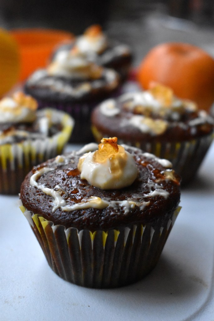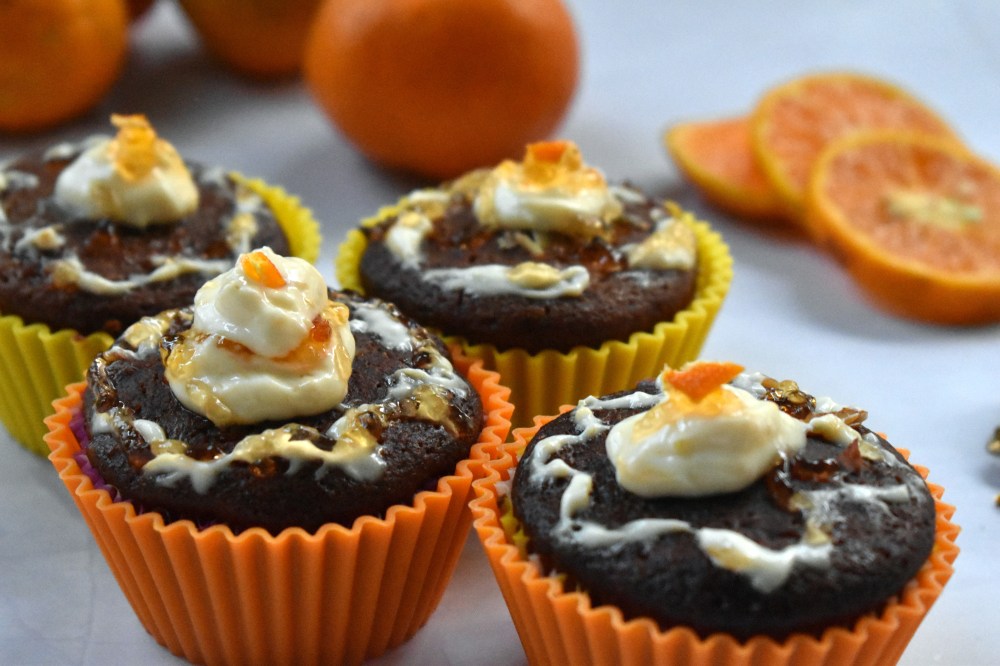 Being a foodie, I too could not withhold my tempt to create some confection out of it in the occasion of Christmas and hence ended up making these delightful baked beauties out of them. However, I have used this wonderful fruit in this dish in two ways, first is the usual way like using the ingredient in my muffin base for baking and the second is using it in the frosting. For a change, my frosting is not the usual whipped cream based, instead I tried to use our very Indian traditional Gujarati dessert shrikhand for the icing and that too infused with the flavour and aroma of these magnificent khasi mandarin oranges.