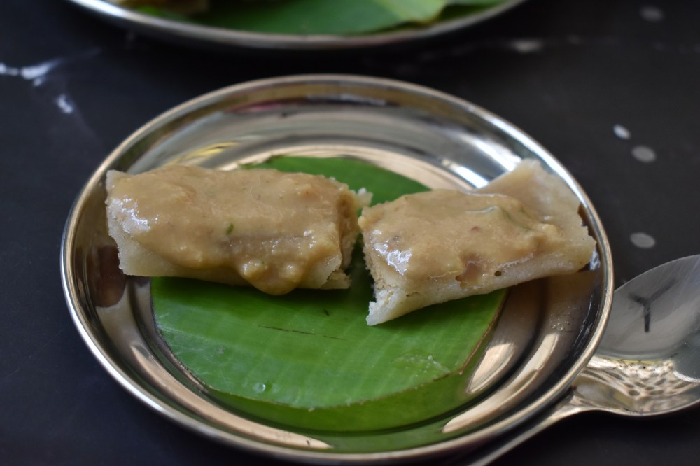 - Brush the patishapta(s) with little oil and keep ready for steaming.
