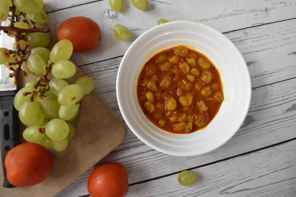 Who would like to refuse a glass of grape juice or a bowl of raw tomato salad in a burning summer day? Very few I guess, right? The two refreshing ingredients, tomatoes & grapes work wonders when prepared together as a chutney/chaatni the bengali way. This simple, easy to prepare, quick and delicious dish is just perfect for this hot and humid season. I hope you will love having it this summer and enjoy the rewards that summer offer. Try out this recipe given below :