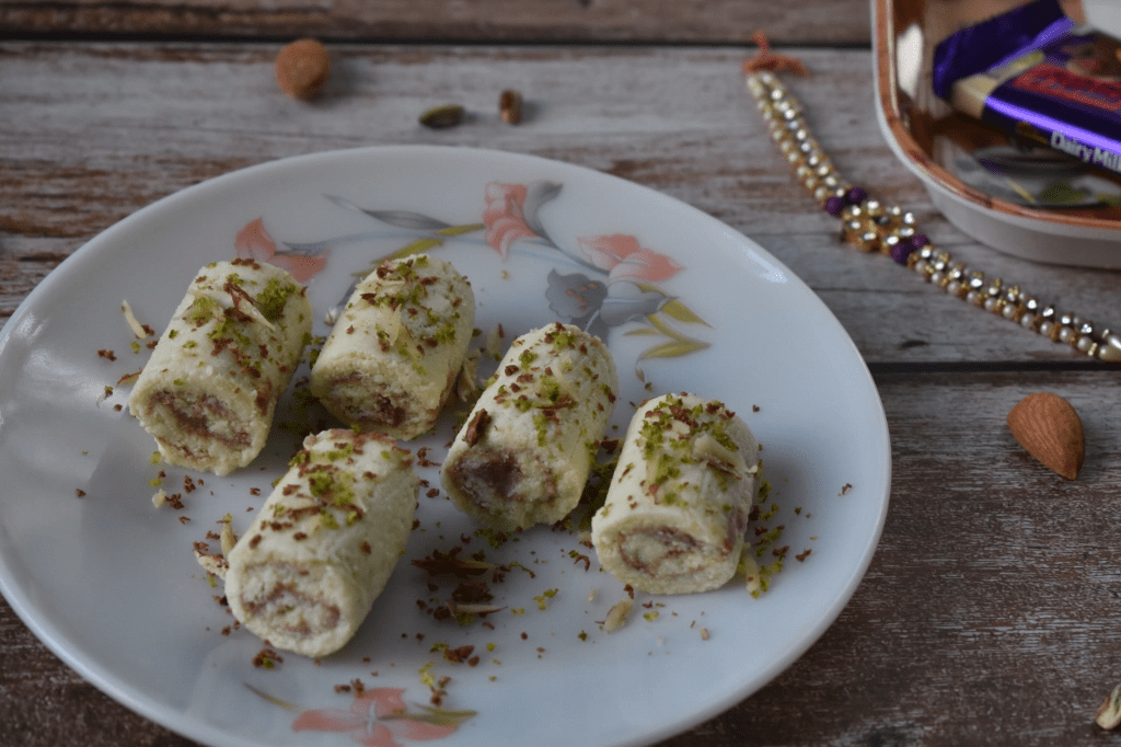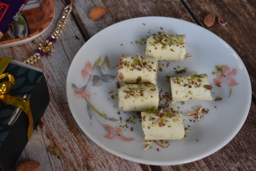 Raksha bandhan is one the most unique festivals of India that celebrates the eternal bond of love and care between brother & sister. This special bond of love is celebrated in our country in the most special way where sisters tie a thread of hope on brother’s wrist for being there for her always and brothers give a promise with loads of gifts to her. This sweet festival of raksha bandhan indeed demands its celebration in a sweeter way and that’s impossible without sweets being a part of it. This custard roll shondesh is simply my attempt to bring a hearty smile😁 on my brother’s face & I succeeded. I have made this simple sweet from leftover custard & freshly made chenna and together they created the magic. My brother is very fond of sweets and nothing can please him more than a unique sweet or dessert and this Shondesh really stole his heart. So I am sharing this rakhi special sweet this time for making your celebration truly special. Here is the recipe below 👇: