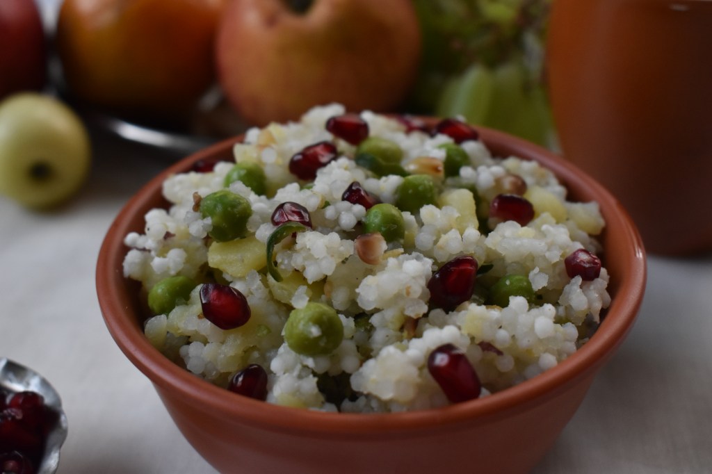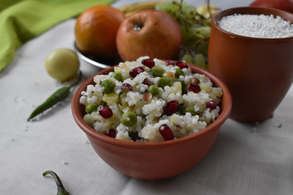 India is a land of festivities and every indian hindu festival is a celebration of food in itself. The kind of food that characterizes hindu festivals are mostly vegetarian and that too of the Saatwik type, which are vegetarian without onion and garlic. Saatwik food are considered the purest forms of food on earth or you can say that they are the cool food which brings peace to the human mind and infuse energy in contrast to the tamsik food which are energy draining, brings lethargy and their consumers to the brink of death and ultimately leads to their demise. Saatwik means power and well being in future, while taamsik and raajsik are more about ignorance, living in the present or passion driven. Saatwik person or saatwik food are always considered superior to the rajasik or tamsik food. Hence the hindu religion, going by these beliefs always favour Saatwik food habits and hence every hindu religious festival celebrate saatwik food in a big way. Hence, going by this notion, we celebrate every puja with saatwik kind of food and this Shivratri is also no different where we had this healthy totally oil free and saatwik dish to satiate our hunger pangs after the day long fasting. Sabudana is one of the common food items in India among many others that are consumed during a vrat or religious fasting. In our home, we include sabudana in many ways in our post fasting meal platter. This sabudana no oil pulao is also an outcome of our craving for something different and that too without oil, other than the potatoes and sweet potatoes that we usually consume on this occasion. My aunt prepares this awesome no oil pulao with sabudana and it is just perfect for any such occasion. It can also serve as a very healthy & tasty breakfast option especially when you are on a diet. This is a very quick and easy to make recipe that can be made simply with minimal ingredients & by adding anything you may love to have along with these usual tapioca pearls. Now jump to the recipe and give it a try :