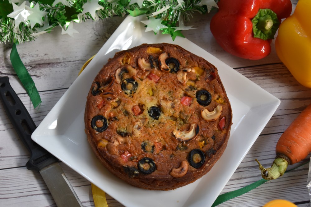 This Christmas, I tried to bake a savoury cake similar to the French savoury cakes with slight variation in the ingredients. My cake base is solely made with Quinoa flour mixed with a bit of all purpose flour and a bit of semolina or sooji mixed with olive oil, cottage cheese, vegetables, salt, spices, condiments and herbs. To know more about this savoury cake, read the recipe here.π