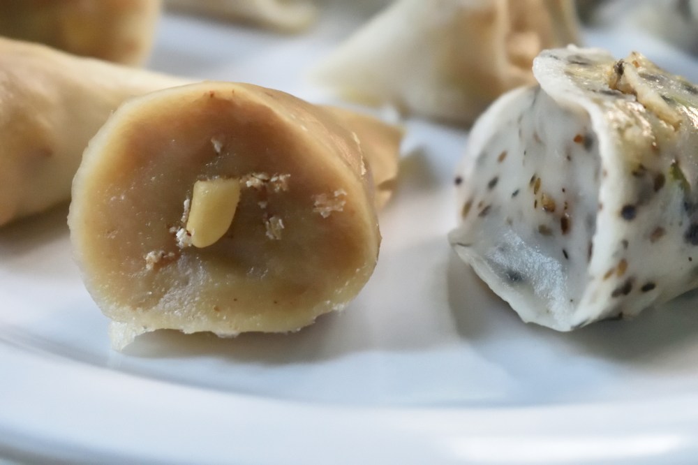 Once, I had came across the Goan holle or Idiyo in an awesome instagram video of MuchFoodGoa (video link given at the end of the page) which seemed quite interesting and I tried to find more about it & discovered that it is quite similar to our Pitha(s) which they usually prepare for their special occassions or any celebration like christmas. From that time I had a wish to replicate it somehow. Since, now it is pitha making time again, I thought why not make this as one of our pithas this time in our platter. It suited really well and was quite easy and interesting to make. It can be easily modified into the way you like by making the filling of your choice, either sweet or savoury and even playing with its shell by infusing spices or ingredients into it or colouring your batter. I have prepared a sweet and a savoury version of my holle. The sweet one has been slightly bengalised by using the most sought after ingredient in Bengal during the winter season which is the nolen gur or date palm jaggery and the savoury one has been made interesting by adding cheese and roasted black sesame seeds into it as sesame seeds are a symbolic of makar sankranti across India.