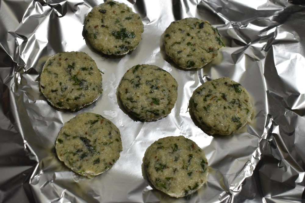 4. Take small amount of the mixture and make a small ball and press it slightly to make a roundel.