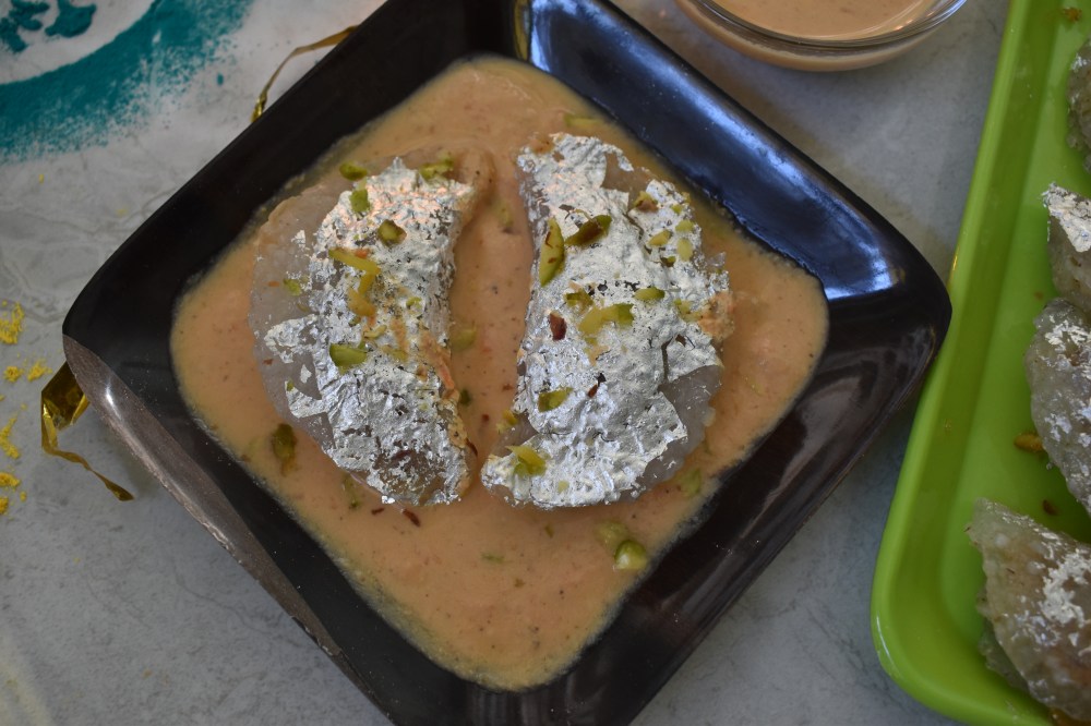 - You may use edible silver foil (Vark) for a Diwali touch up and garnish with some chopped pistachio.